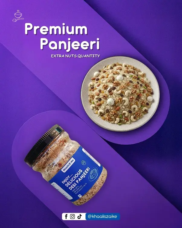 Khaalis Zaike makes panjeeri online shopping in Pakistan simple, bringing the traditional "Hath ka Zaika" (handmade taste) from our kitchen to your table.